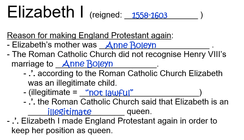 Today you are going to learn how Queen Elizabeth I made England Protestant again…