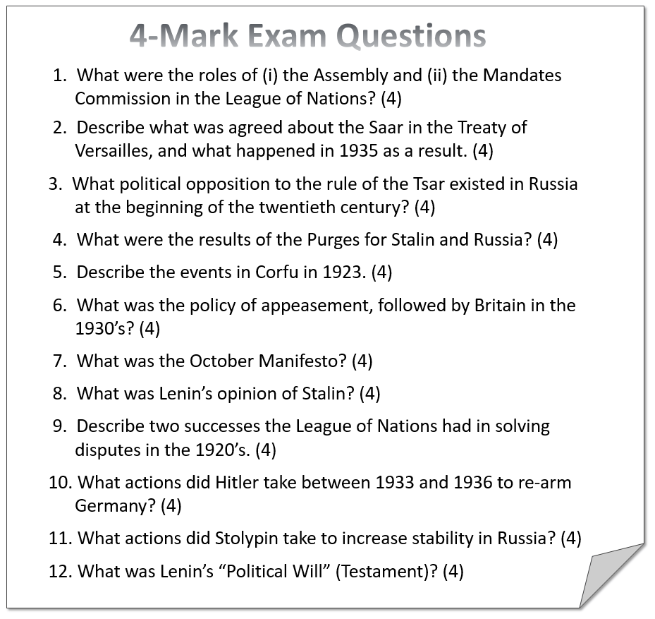 Now answer the four questions (from the following list of 4-mark questions) assigned to you in full. (Complete this in your essay writing book.)