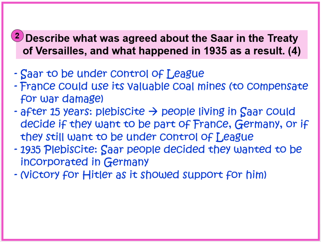 So, this is a “straight-forward” Question… that often starts with “what”, “how”, or “describe”. (The 4-mark questions are fairly easy – make sure that you get full marks for them!)