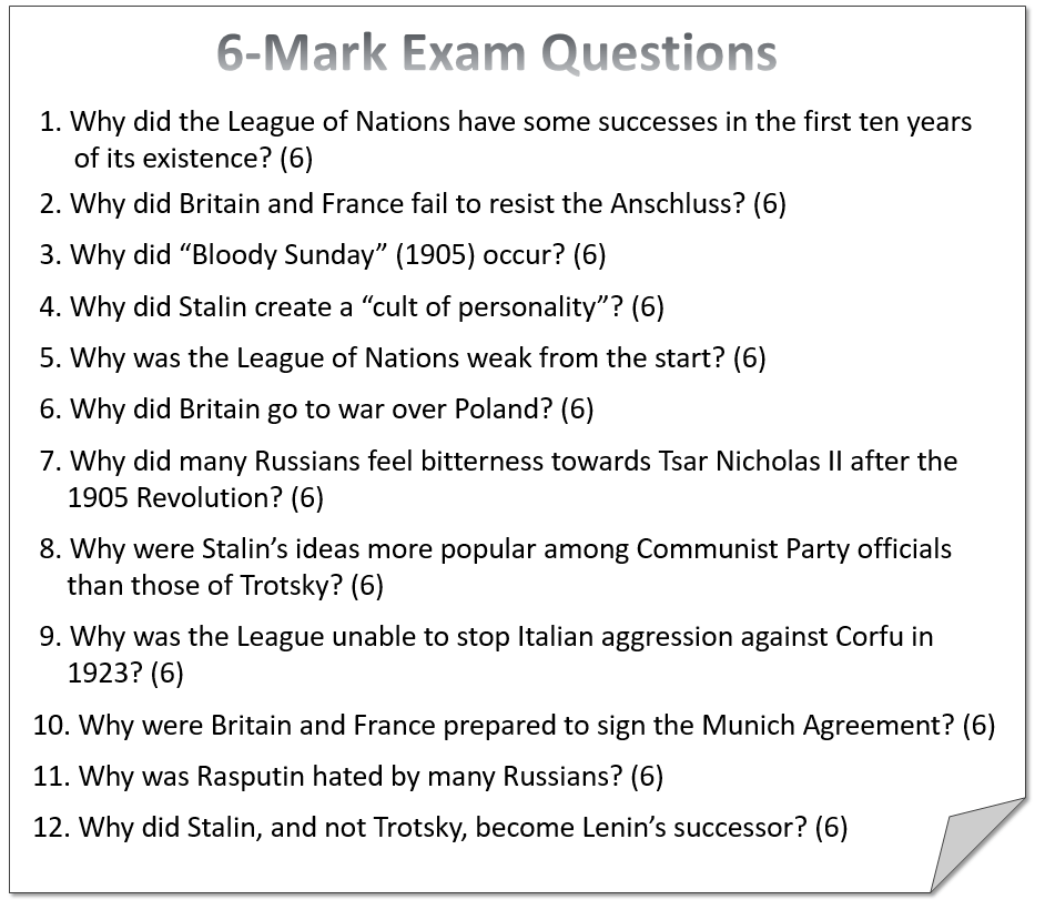 On page 67 in your Exam Preparation Booklet are some 6-mark questions. In this lesson we will look at Questions 1-6 in more detail.