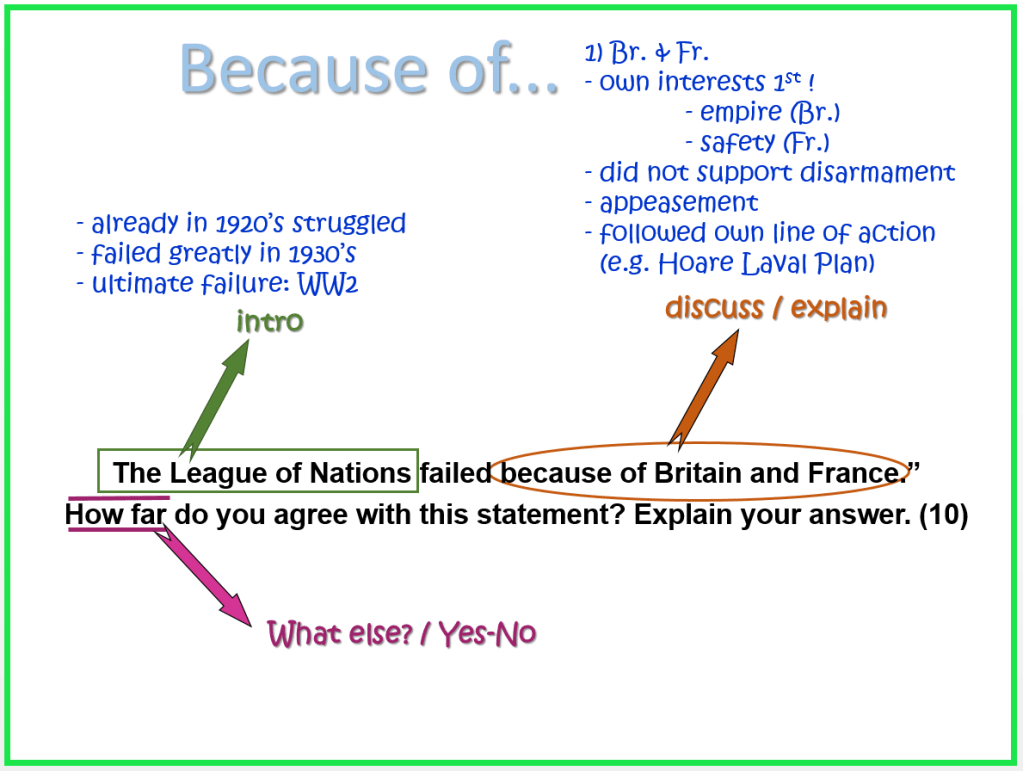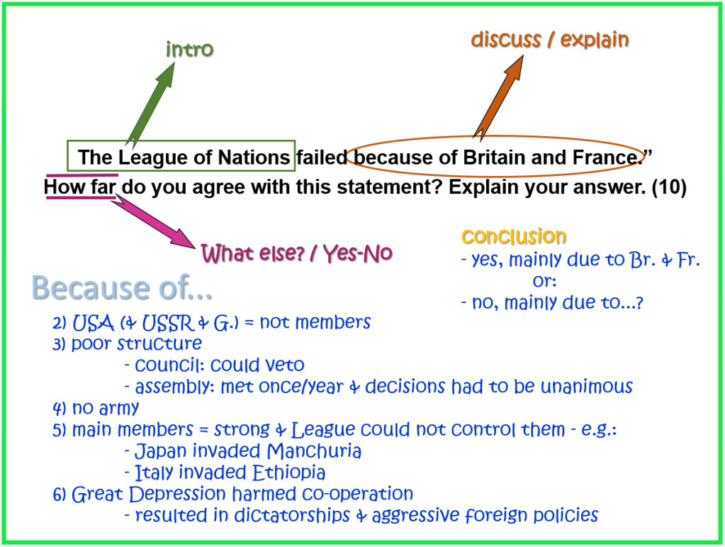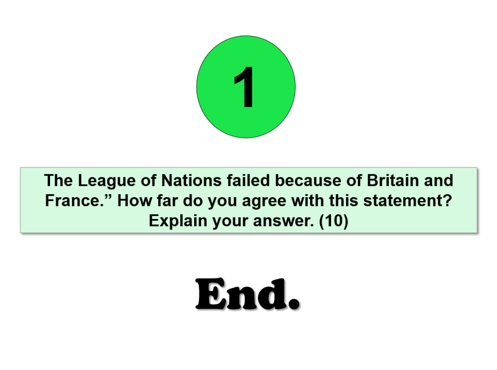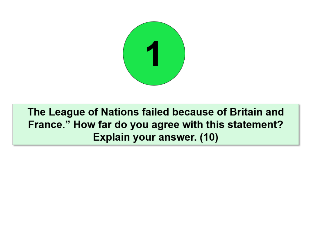 “The League of Nations failed because of Britain and France.” How far do you agree with this statement? Explain your answer. (10)