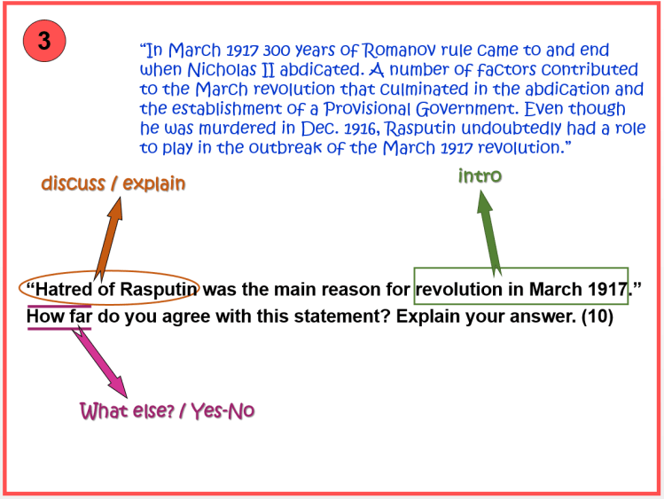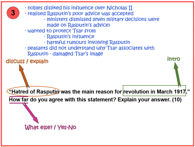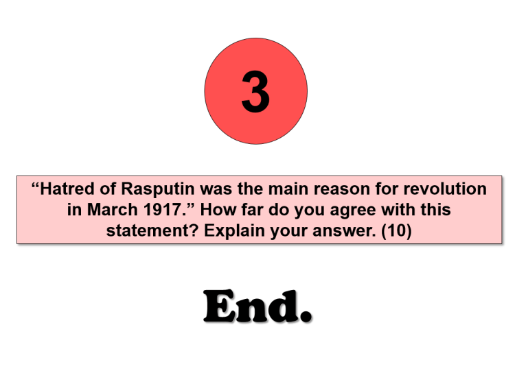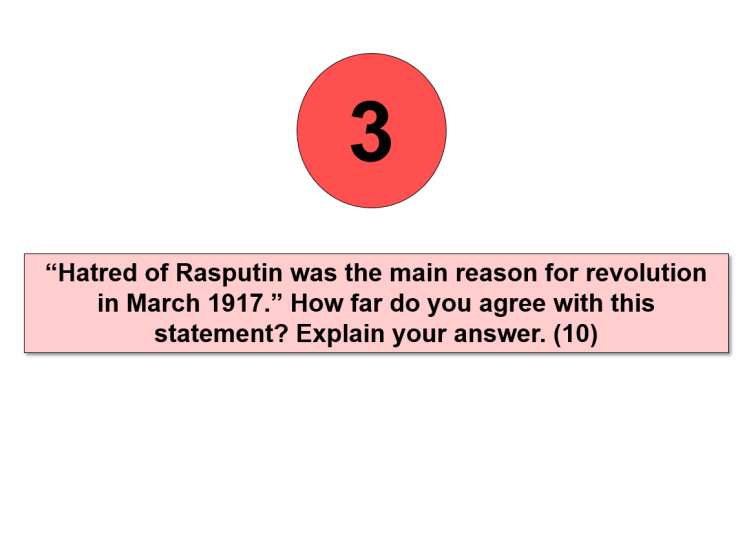 “Hatred of Rasputin was the main reason for revolution in March 1917.” How far do you agree with this statement? Explain your answer. (10)