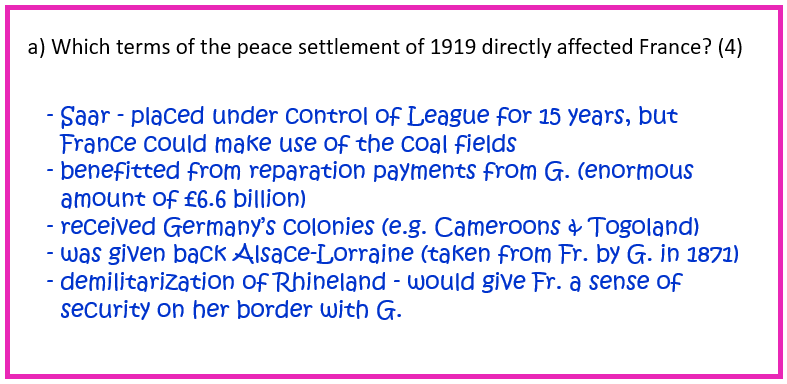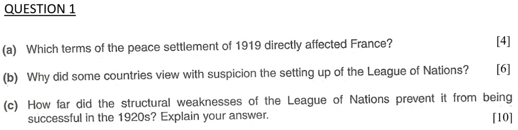 (c) ‘The Treaty of Versailles was a fair settlement.’ How far do you agree with this statement? Explain your answer. [10]