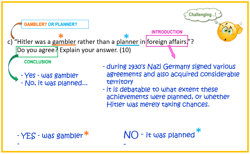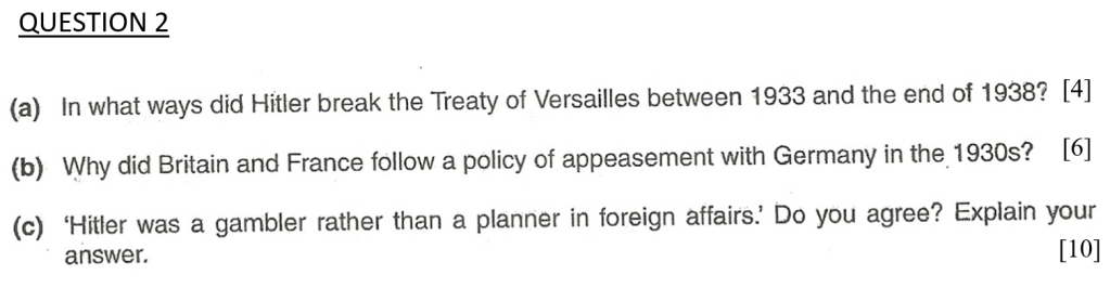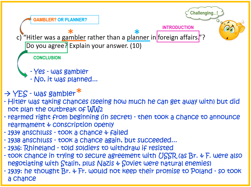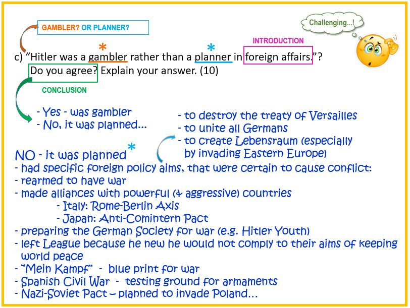 “Hitler was a gambler rather than a planner in foreign affairs.” Do you agree? Explain your answer. [10]