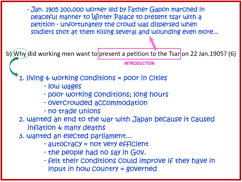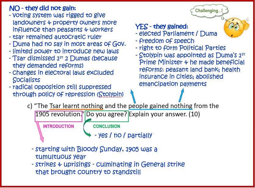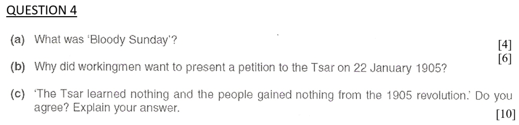 “The Tsar learnt nothing and the people gained nothing from the 1905 Revolution.” Do you agree? Explain your answer. [10]