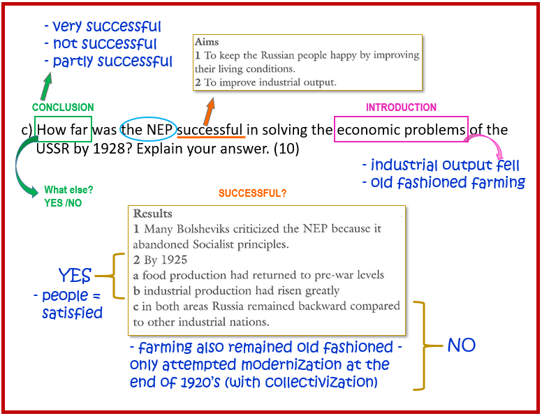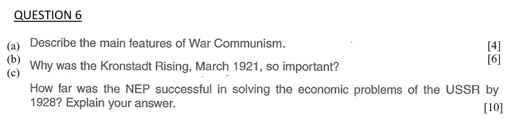 How far was the NEP successful in solving the economic problems of the USSR by 1928? Explain your answer. [10]