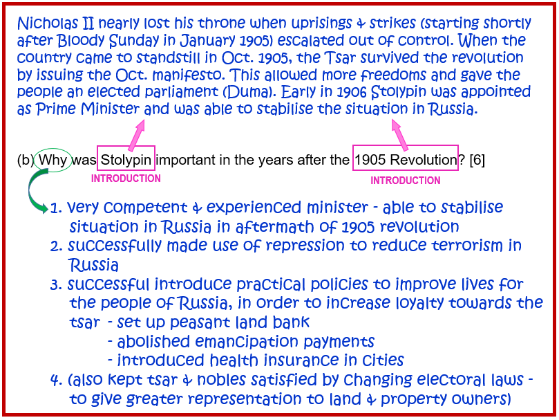 (b) Why was Stolypin important in the years after the 1905 Revolution? [6]