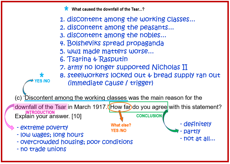 (c) ‘Discontent among the working classes was the main reason for the downfall of the Tsar in March 1917.’ How far do you agree with this statement? Explain your answer. [10]