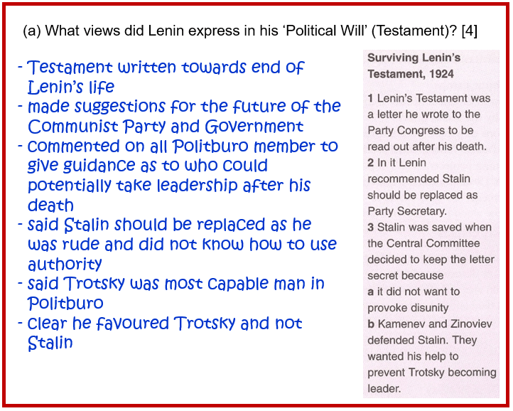 (a) What views did Lenin express in his ‘Political Will’ (Testament)? [4]