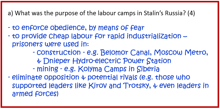 What was the purpose of the labour camps in Stalin’s Russia? [4]