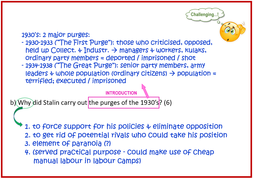 Why did Stalin carry out the purges of the 1930’s? [6]