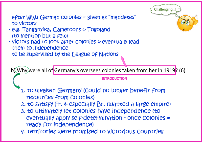 Why were all of Germany’s overseas colonies taken from her in 1919? [6]