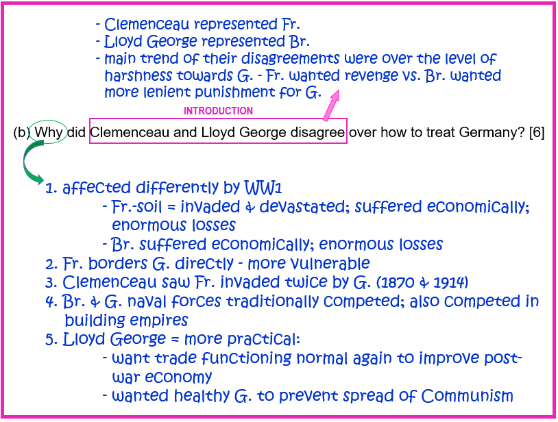 (b) Why did Clemenceau and Lloyd George disagree over how to treat Germany? [6]