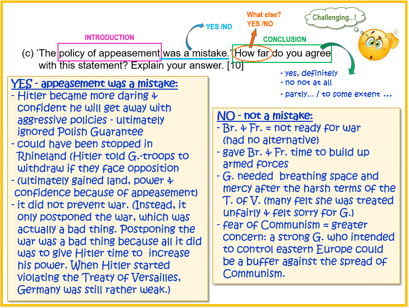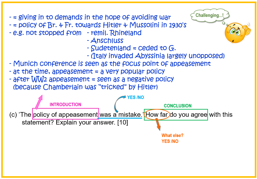 (c) ‘The policy of appeasement was a mistake.’ How far do you agree with this statement? Explain your answer. [10]