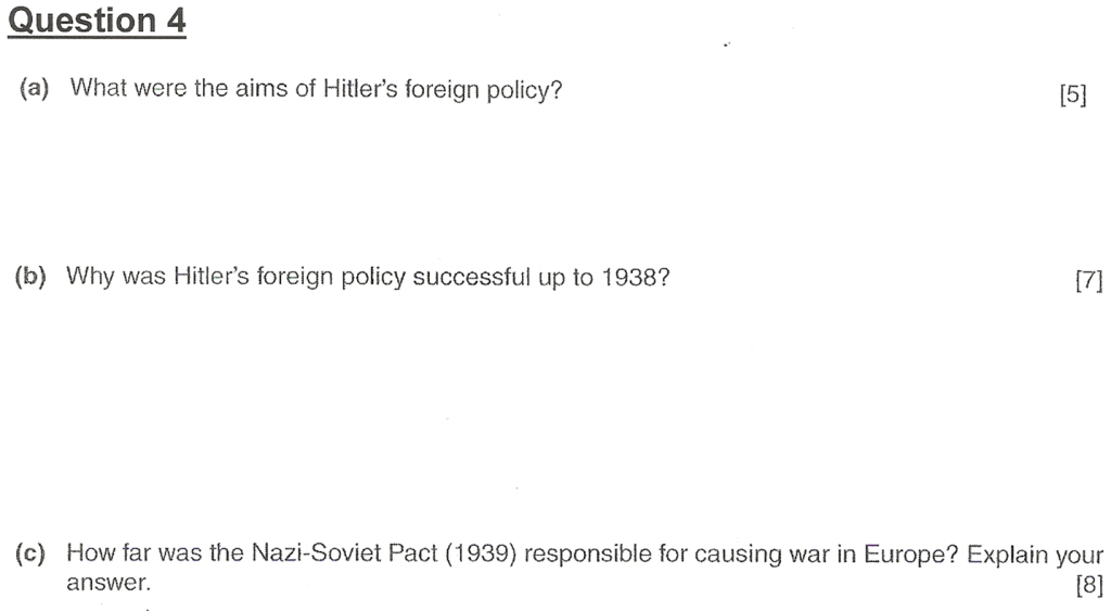 Exam Q on Hitler’s Foreign Policy. (3:26 minutes long)