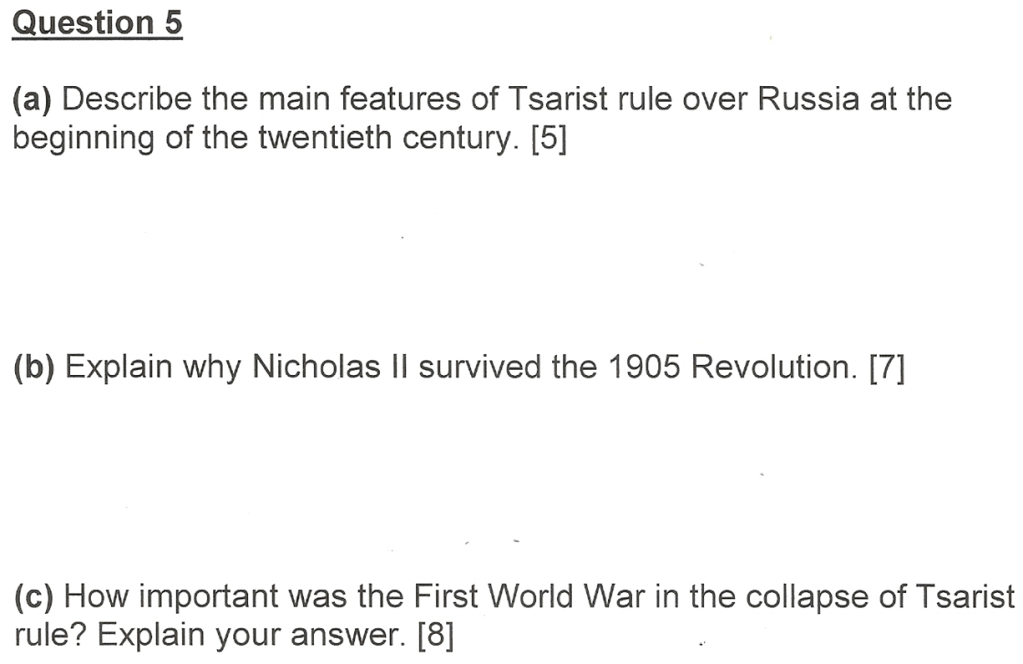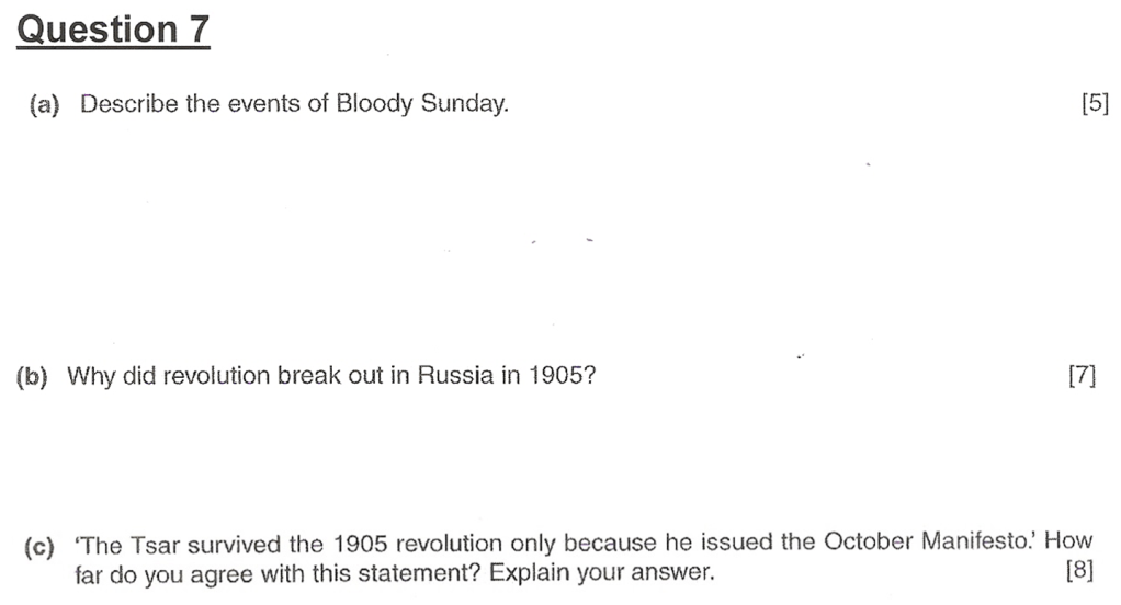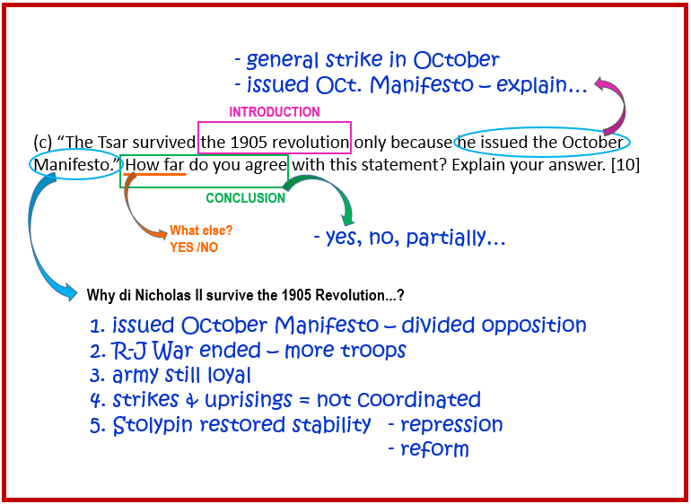“The Tsar survived the 1905 revolution only because he issued the October Manifesto.” How far do you agree with this statement? Explain your answer. [10]
