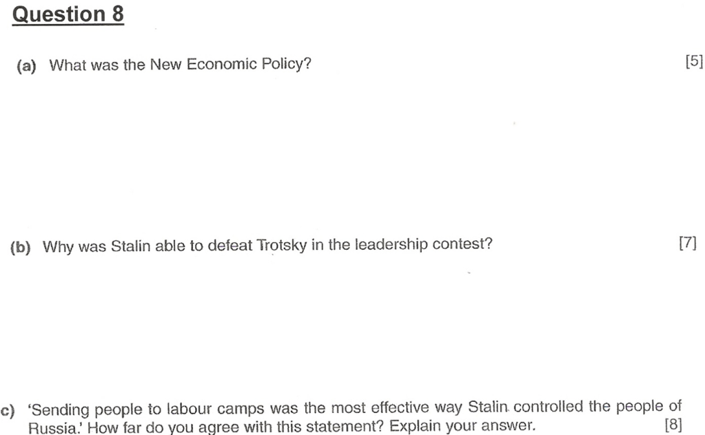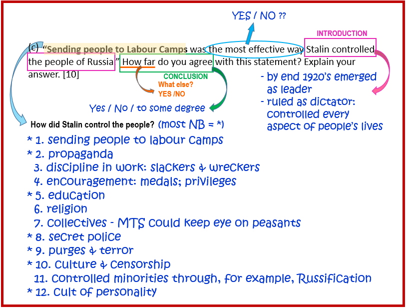 “Sending people to Labour Camps was the most effective way Stalin controlled the people of Russia.” How far do you agree with this statement? Explain your answer. [10]