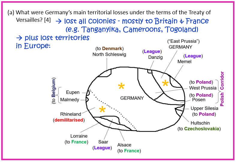 What were Germany’s main territorial losses under the terms of the Treaty of Versailles? [4]