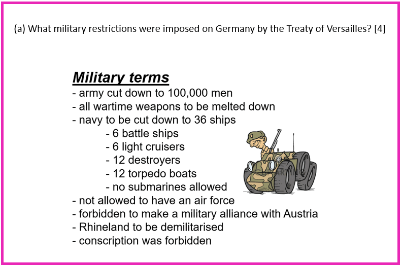 What military restrictions were imposed on Germany by the Treaty of Versailles? [4]