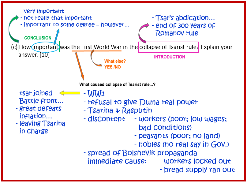 How important was the First World War in the collapse of Tsarist rule? Explain your answer. [10]
