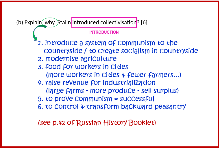 Explain why Stalin introduced collectivization. [6]
