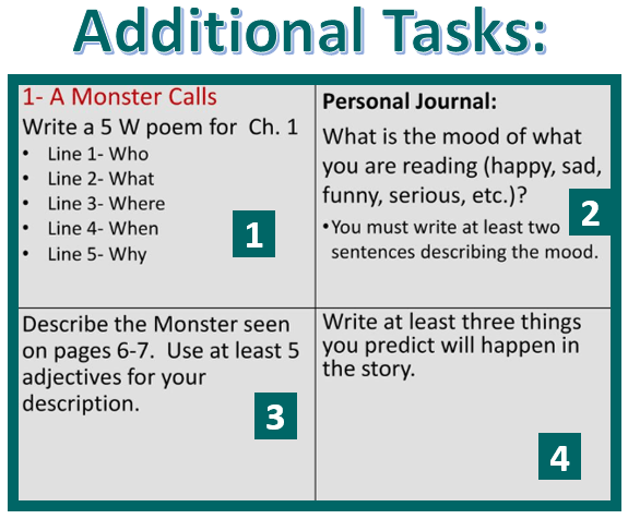 The tasks in this section come from: A Monster Calls by Patrick Ness – ppt download (slideplayer.com)