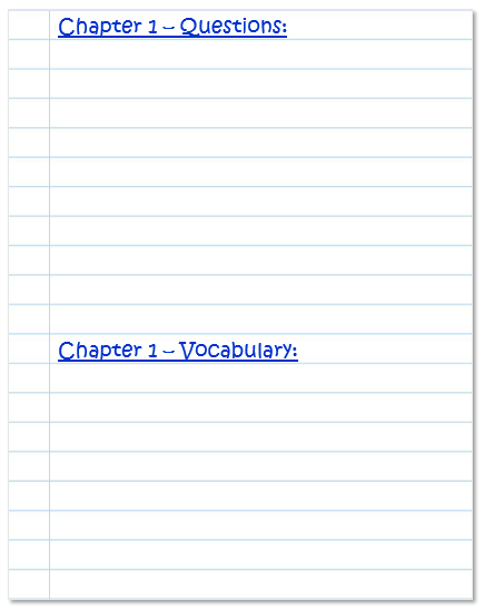 Here is an example of the Chapter 1 focus of reading record: