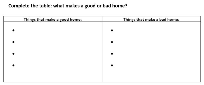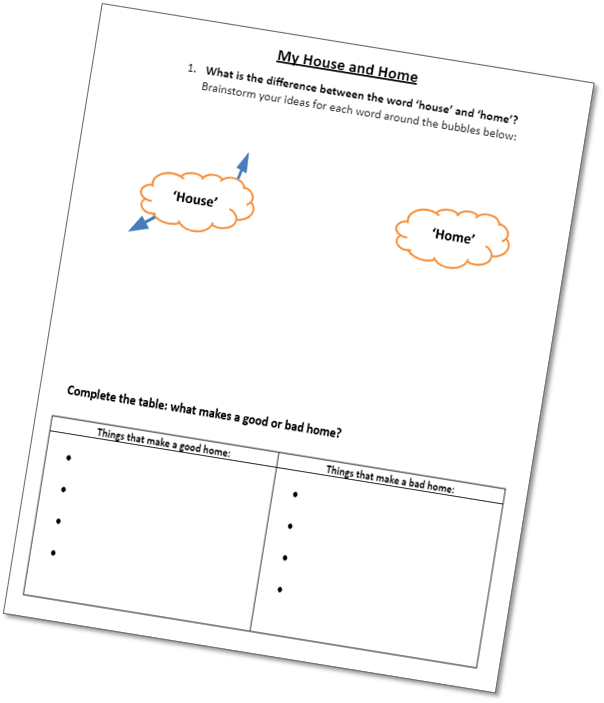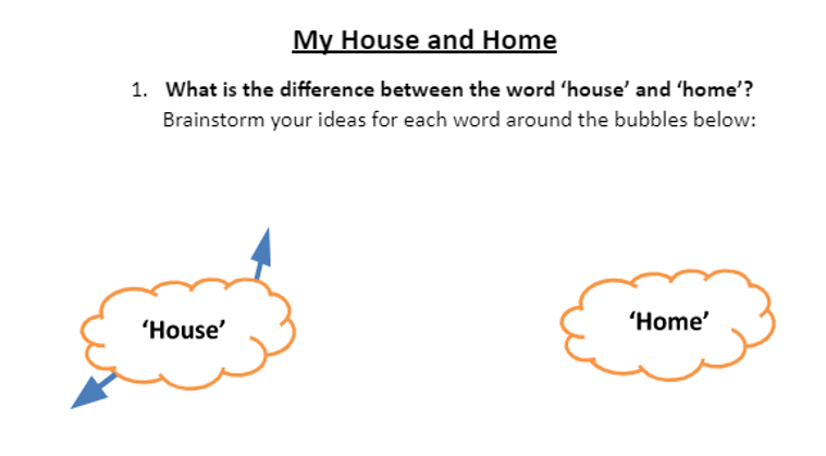 In the next lesson you will do a task based on the words “house” and “home”. Complete this sheet in preparation for the task.
