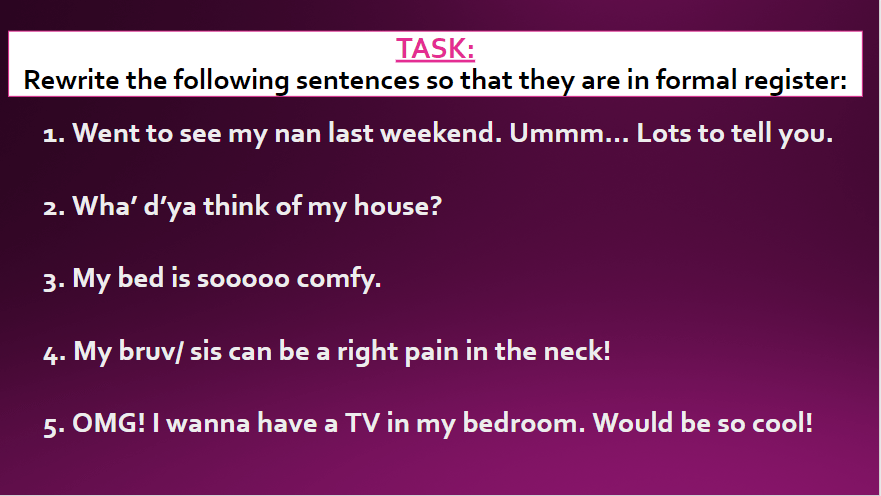 Formal and informal registers: