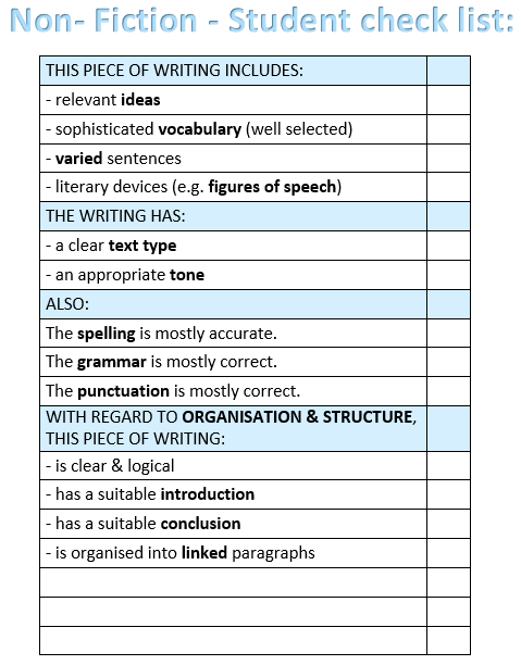 Look at the check list below – these are the things that your teacher will be looking for when marking your work!