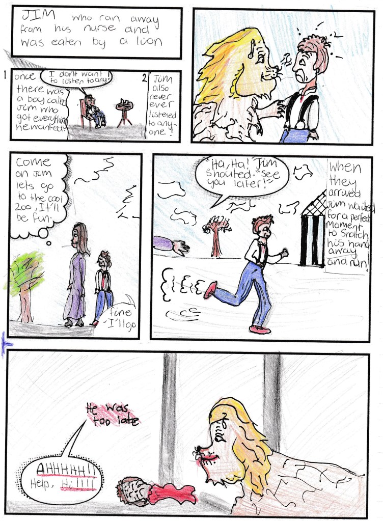 Finally, draw a cartoon strip with captions to show your understanding of the events at the zoo.
