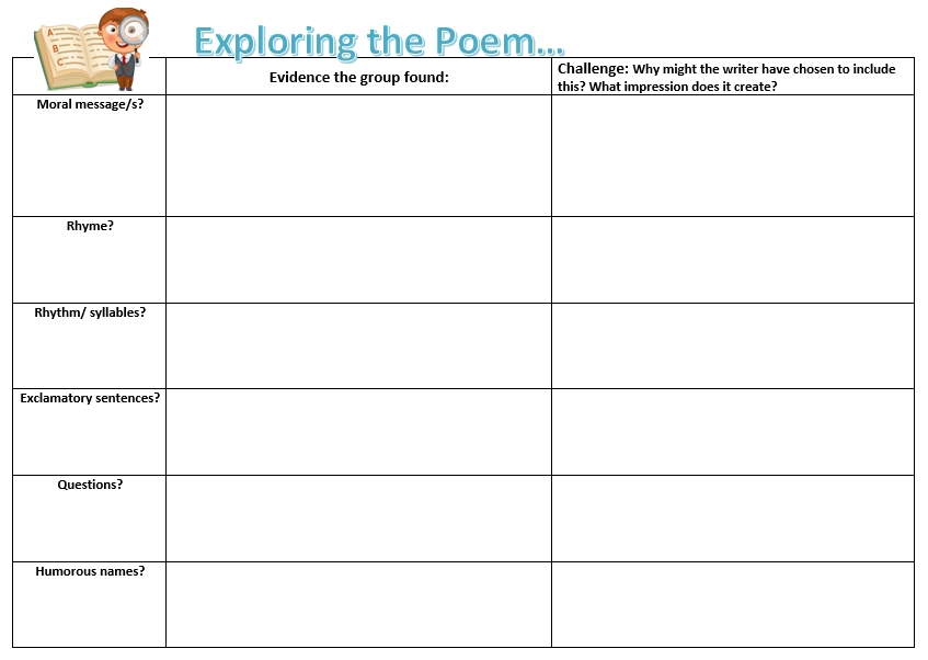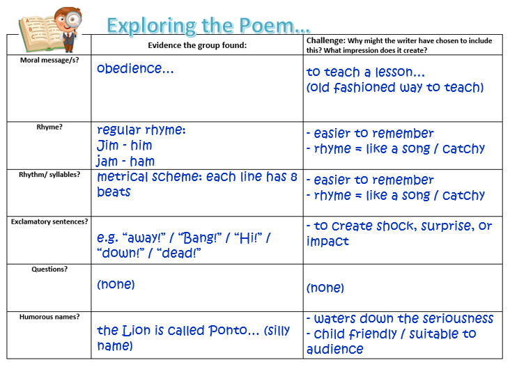 In groups, you are going to explore the text of the poem about “Jim, the boy who ran away”. You are going to examine how it had been put together by the writer.