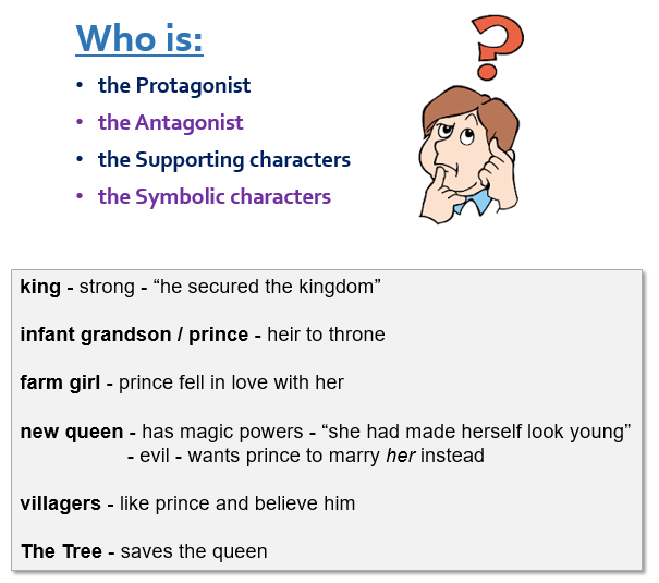 - to identify different types of characters in a story