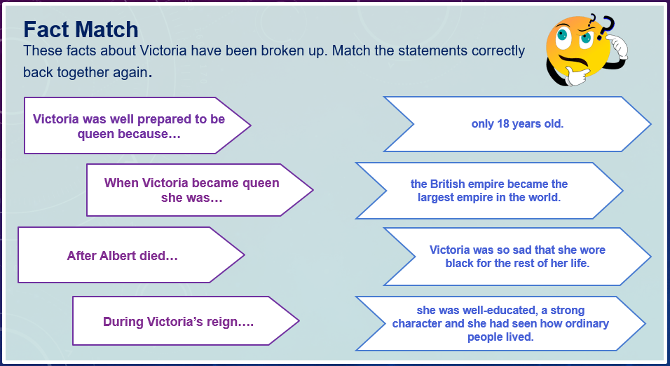 If not completed yet, continue to copy the information on Queen Victoria onto your News Sheet.