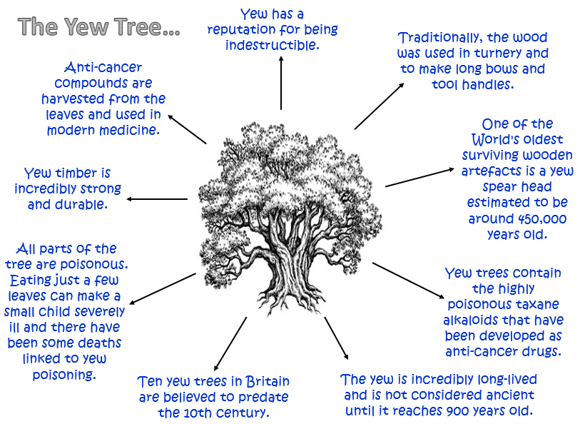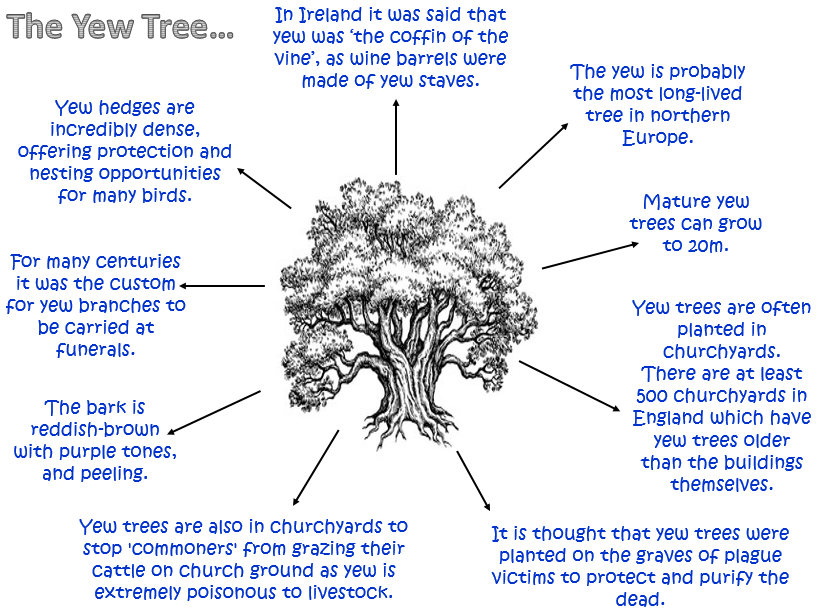 Complete the following task to determine why the author has chosen to use a yew tree to be associated with the monster. Use the diagram to write down interesting facts or ideas about yew trees. (You need to do research on this and complete the task at home!)