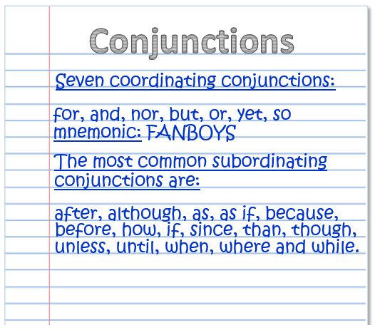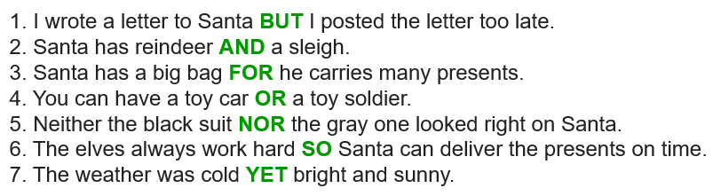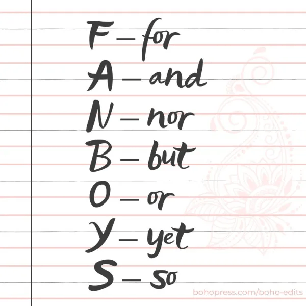 Remember this mnemonic from last year? It helps us to remember the seven coordinating conjunctions.