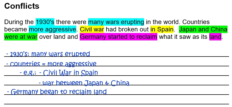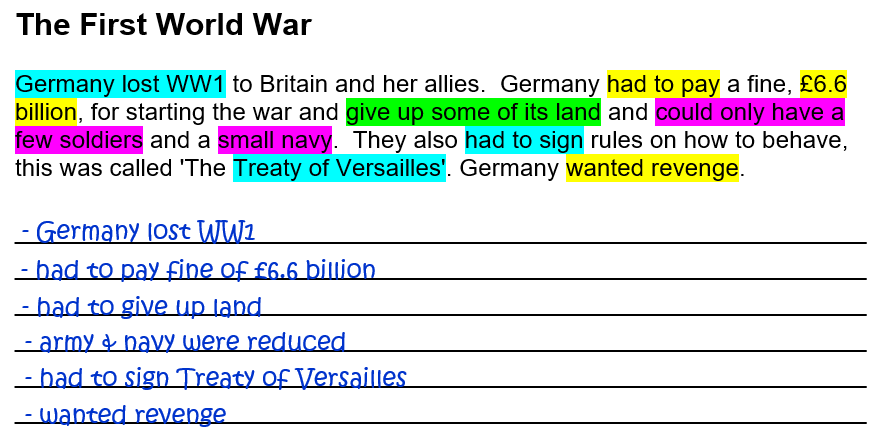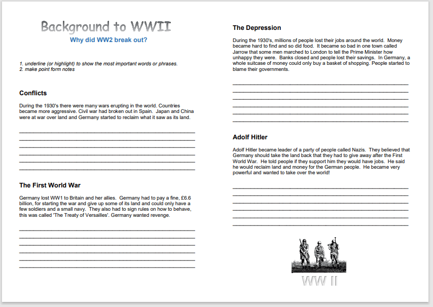 Let’s examine the reasons for WW2 in a bit more detail. Read the reasons given on the worksheet. Then highlight the most important points and make point-form notes.