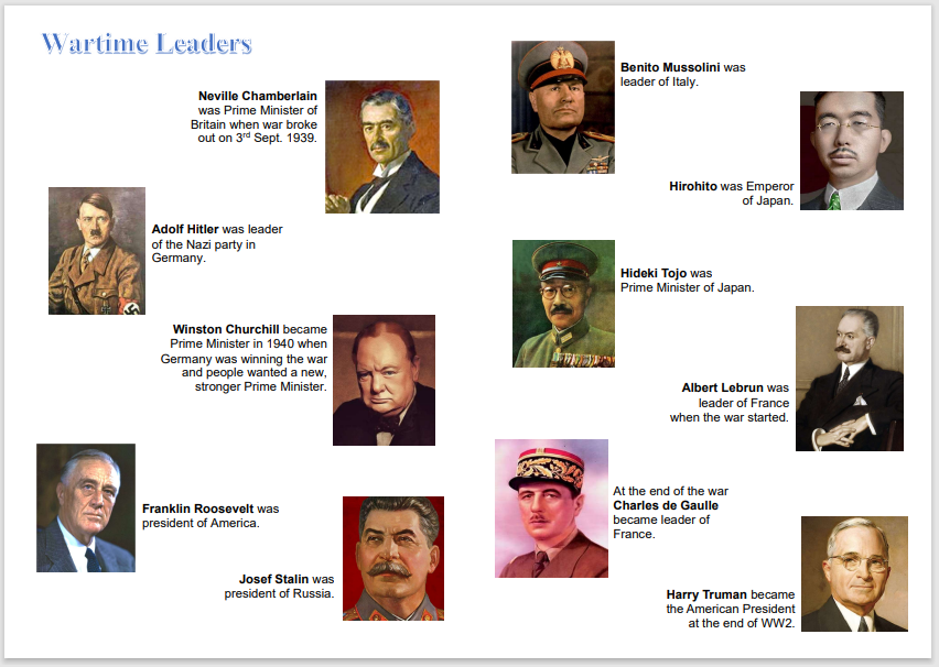 So, who were the leaders of these wartime countries? The videos below will give you an idea…