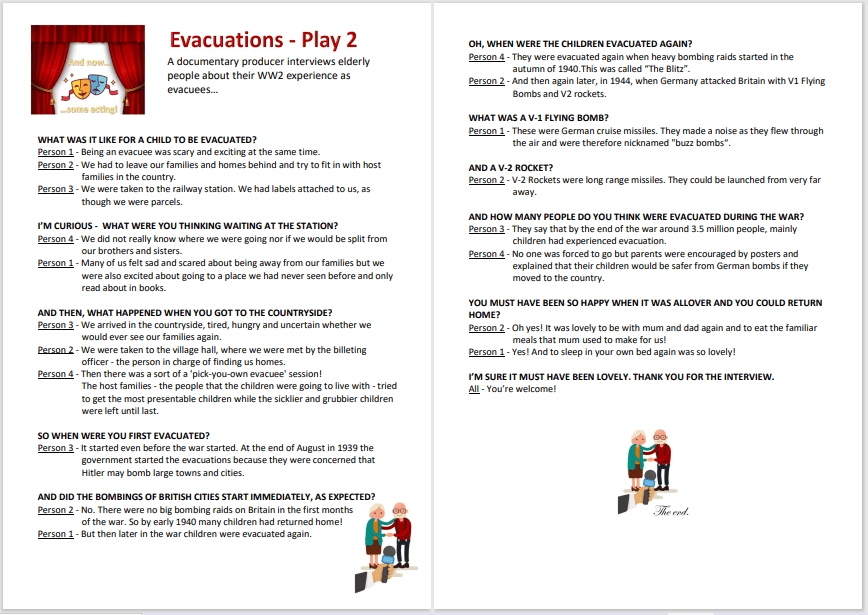 You will now do a short play involving an interview with some evacuees on their way to the countryside. First decide who will take which part in the play. Then read the script in your group. Finally, prepare to show the short dramatization to the rest of the class.