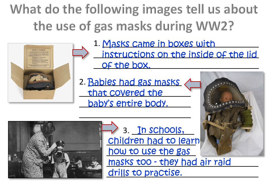 Let’s pretend that you are an expert on WW2 Gas Masks. Take us through the following slides explaining the images to the rest of the class…