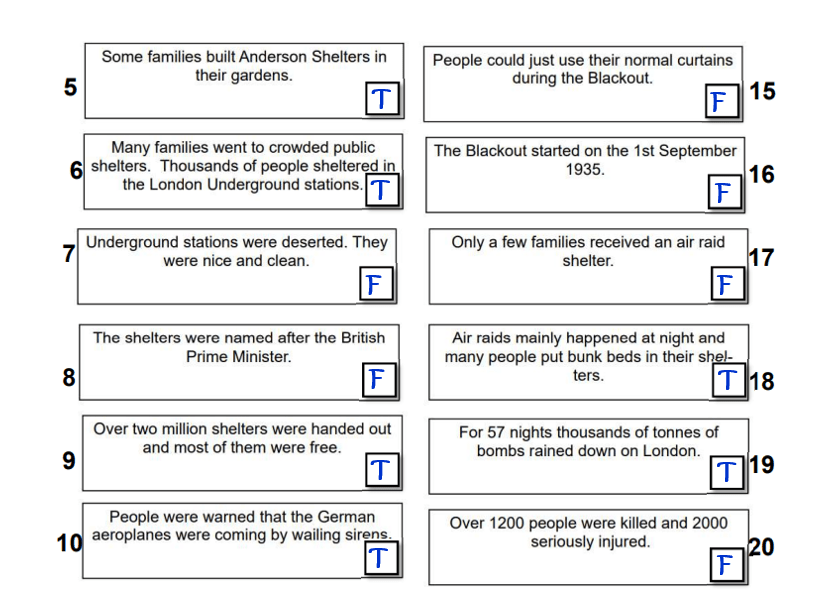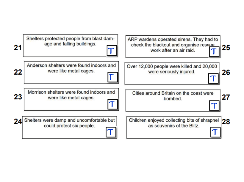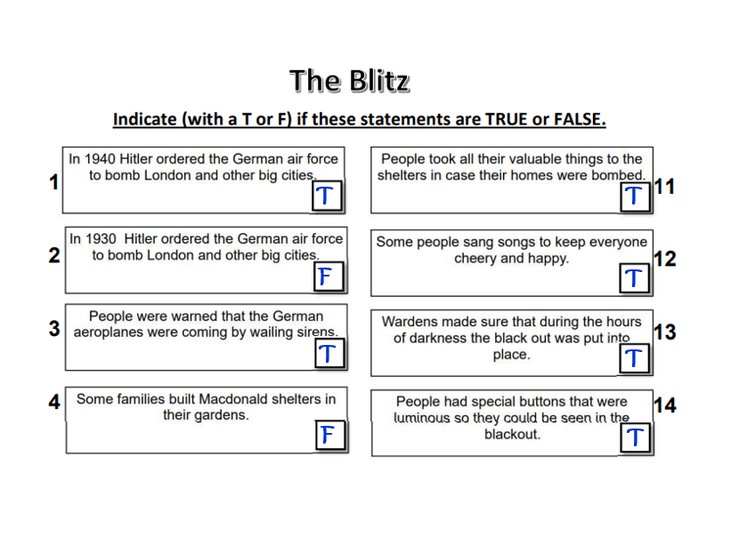 Complete the following worksheet to test your knowledge of the WW2 Air Raids. You need to show which statements are true and which are false.