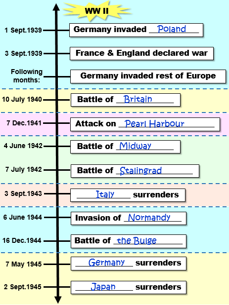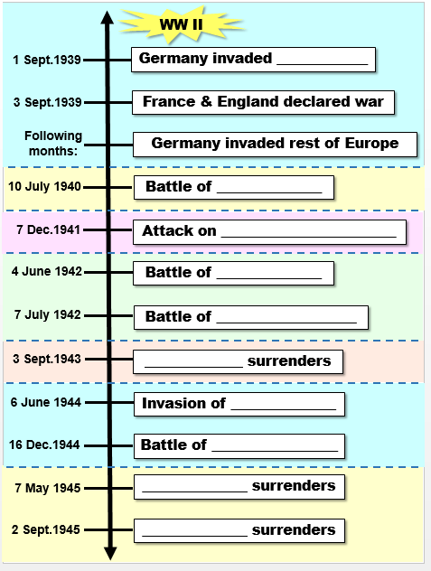 Read the following timeline about the main events of WW2: