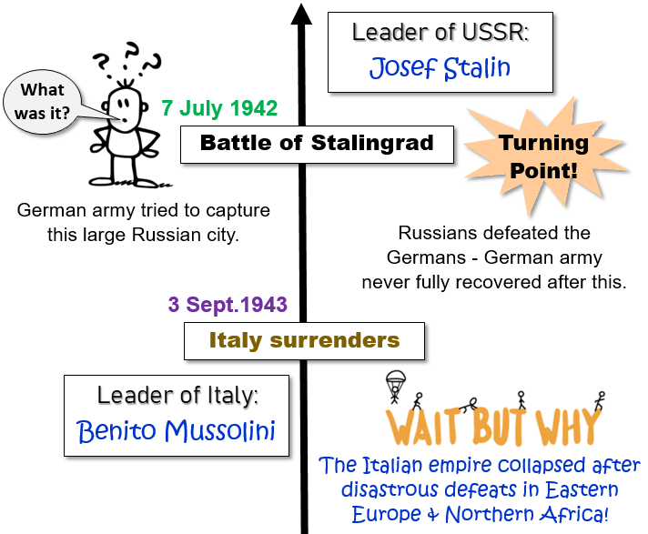 By means of a timeline we will go through the entire war, from 1939 to 1945. The timeline will give you a brief overview of some of the main events of WW2. It will fast-forward you through WW2…!