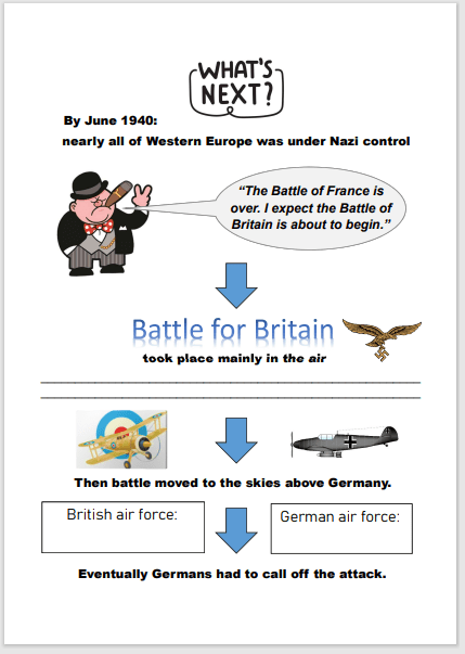 Look again at the information above and fill in the missing information on the worksheet on the Battle for Britain: