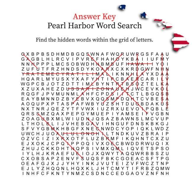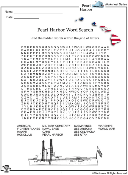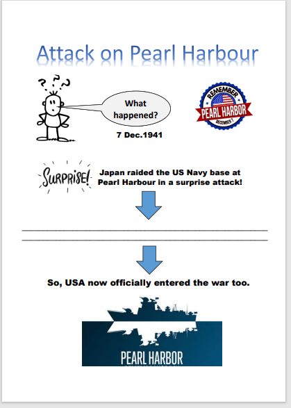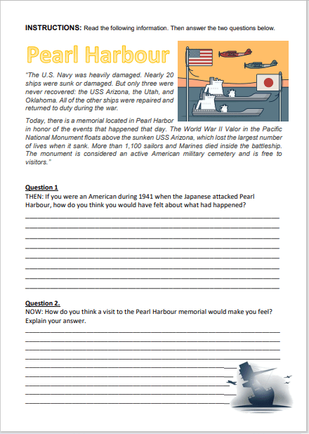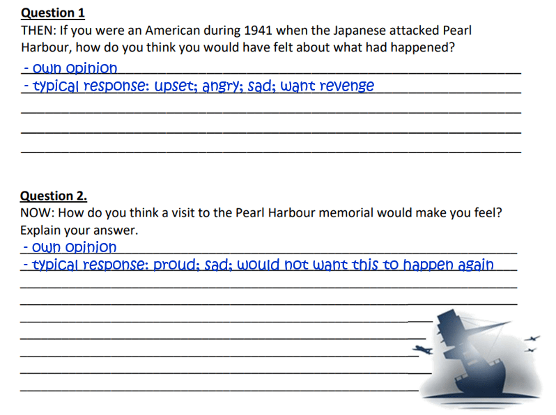 Look again at the information above and fill in the missing information on the worksheet on the attack on Pearl Harbour: