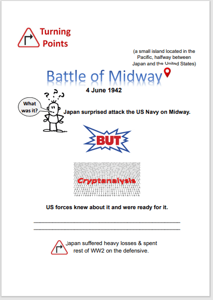 Look again at the information above and fill in the missing information on the worksheet on the Battle of Midway: