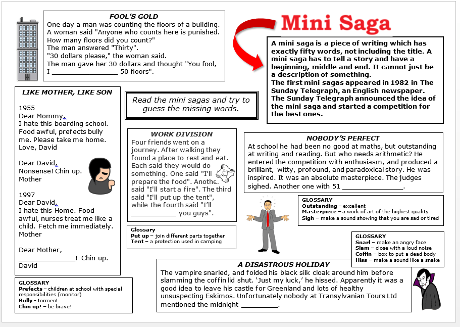 Finally, complete the diagram to share your thoughts on mini sagas.