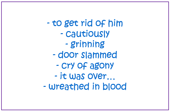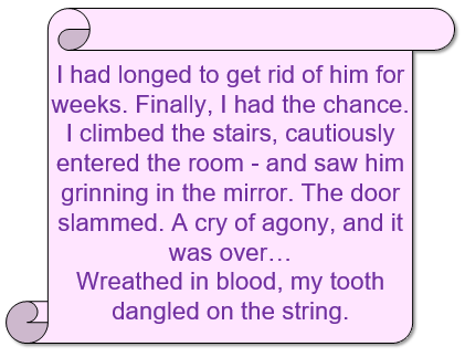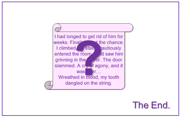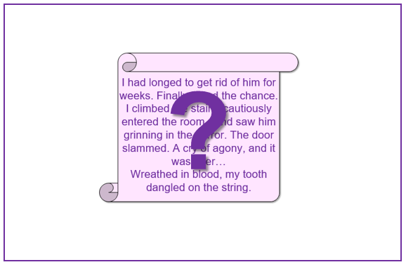 Challenge: could contain a pun… (For example, the first story about the tooth could be called ‘The Perfect Murder? A Frayed Knot!’)