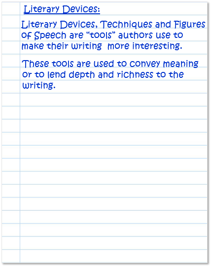 Here is a reminder of what we mean by “Literary Devices”, “Literary Techniques”, and “Figures of Speech”: