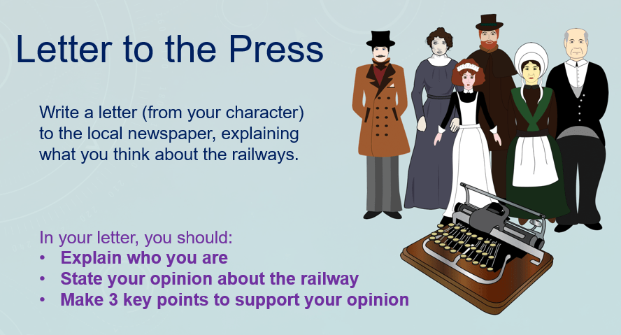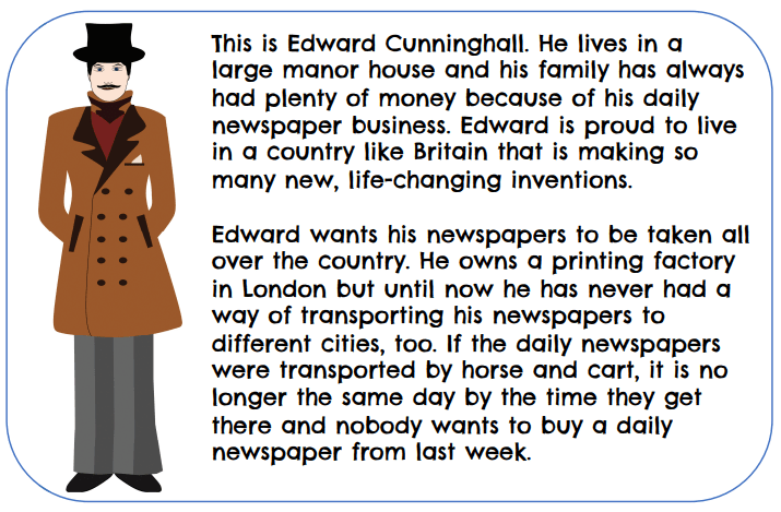 You will each get a character card. Read about your character and try to imagine how they might feel about the railways.